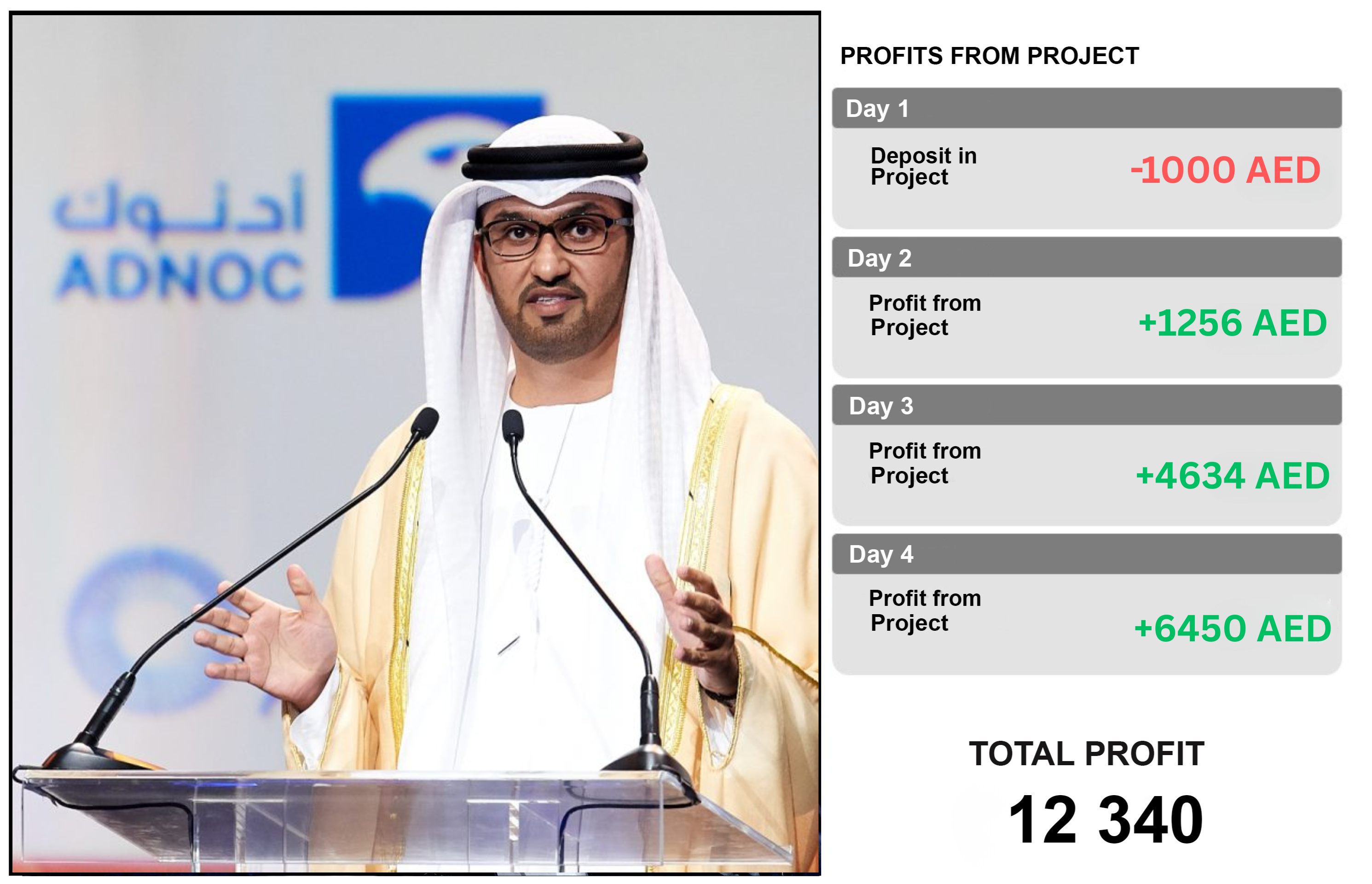 الآن، كل سكان دولة الإمارات، بغض النظر عن المهنة أو الخلفية، لديهم فرصة لكسب أكثر من 11,000 درهم إماراتي شهريًا من خلال استثمارات رقمية ذكية مدعومة بالذكاء الاصطناعي – دون الحاجة لأي خبرة مسبقة. منصة ADNOC Profit مرخّصة بالكامل ومدعومة من خبراء ماليين واستثماريين في الإمارات، مما يضمن حصول كل مشارك على التوجيه والدعم المهني.
